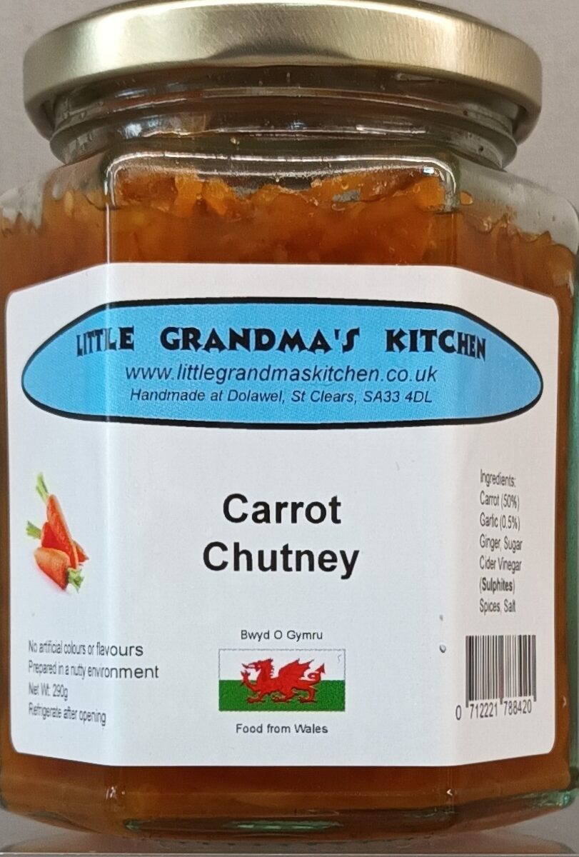 Carrot (50%), Garlic (0.5%), Ginger, Sugar, Cider Vinegar (Sulphites), Spices, Salt