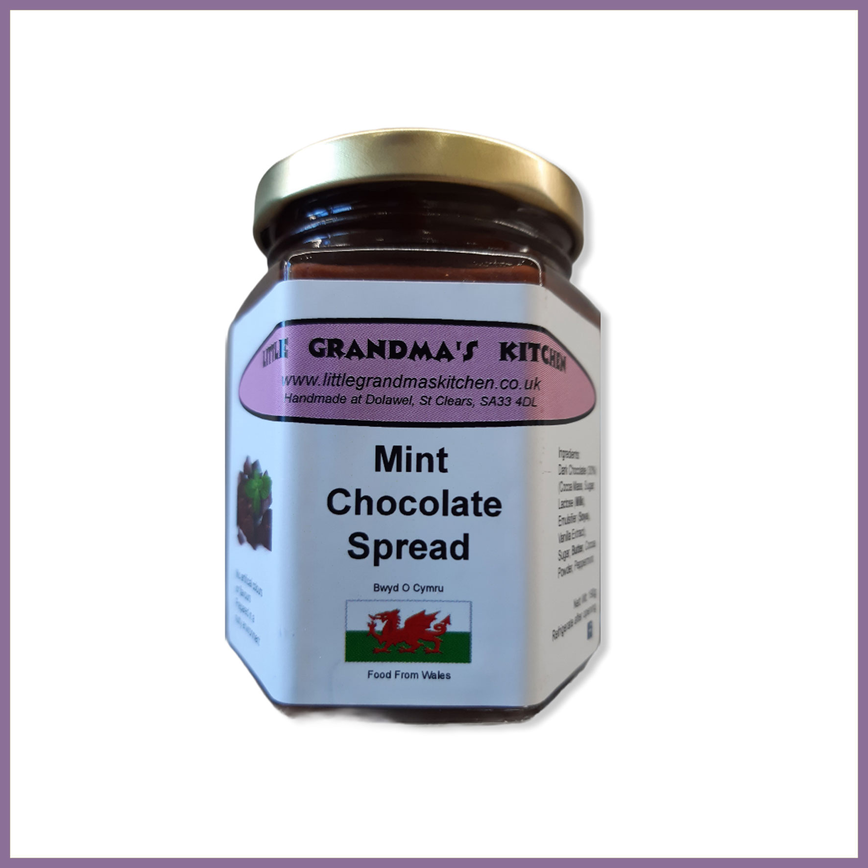 A silky smooth textured chocolate spread with a hint of mint, made with Shirgar Welsh Butter and dark chocolate.